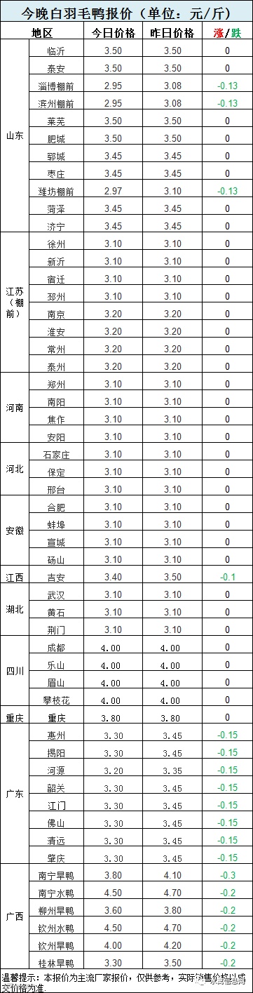 二:南方活禽区域,节前集中出栏,养殖端七寸被擒,机构控盘严重,两广今晚报价继续下跌。(当前市场混乱,鸭贩杀价严重,报价仅供参考,以当面成交价为准)
