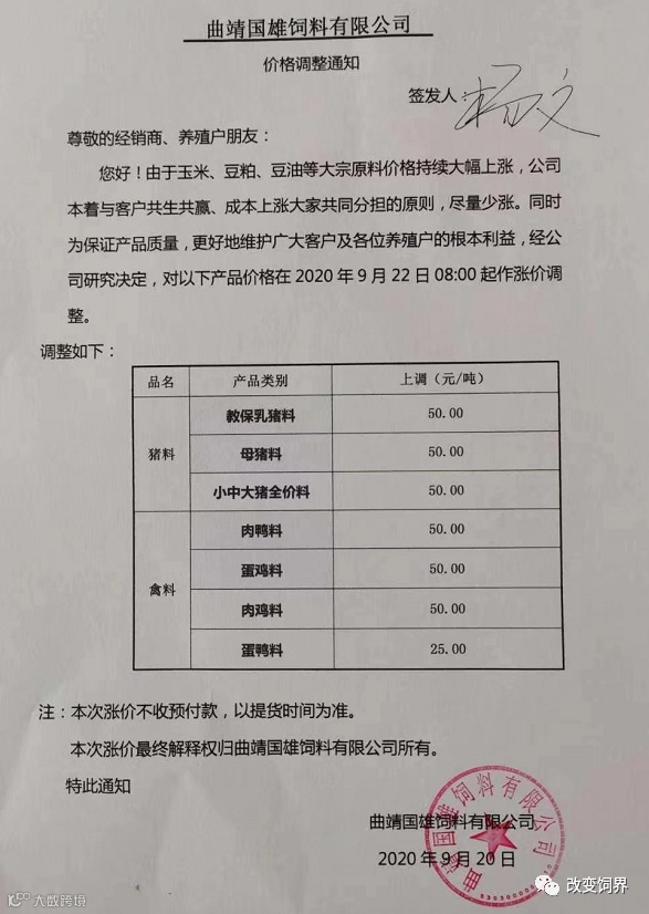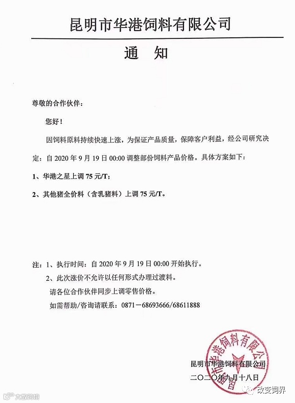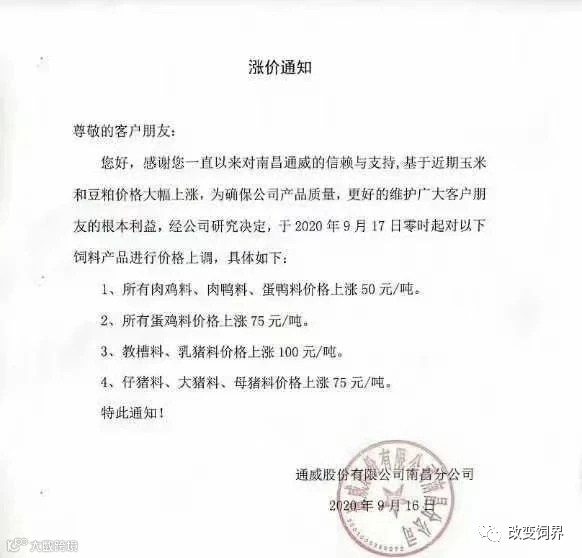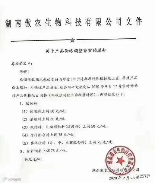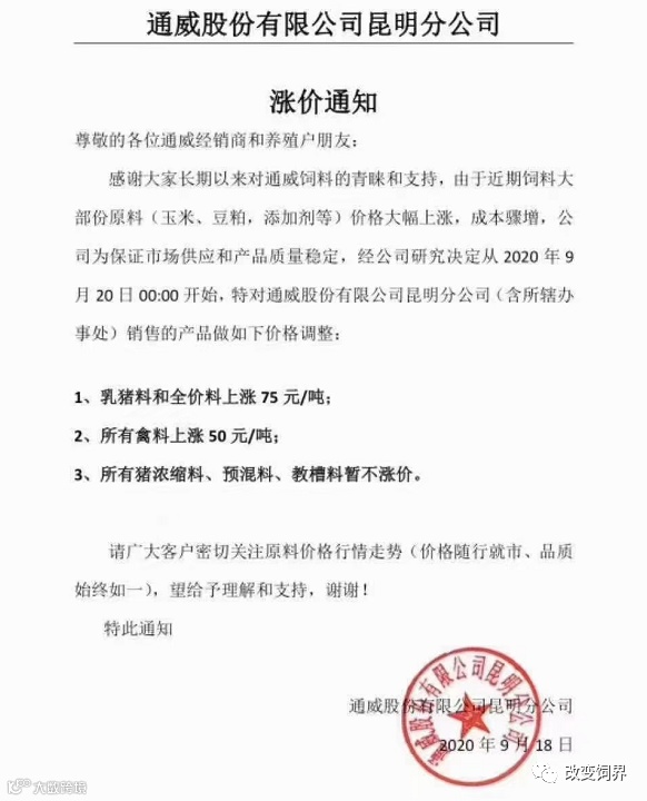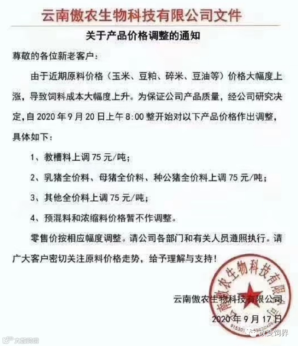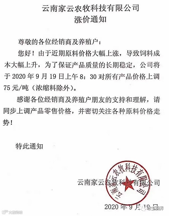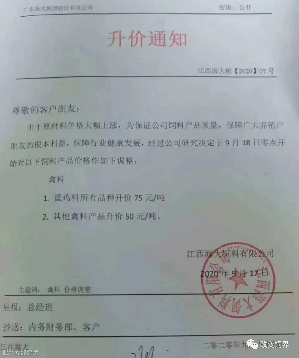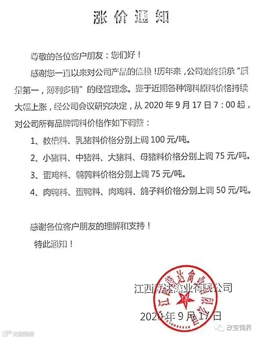 2020年9月,饲料涨价大潮开启