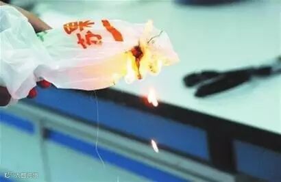 9.燃烧:将塑料袋剪下一角,放在火上一烧,无毒的烧之即燃,将它离开火后仍继续燃烧,并出现黄色火焰,而且熔塑像蜡烛一样一滴一滴往下掉,发出石蜡气味;有毒的,不易燃烧,燃烧后呈绿色火苗,并有一股呛鼻的异味。