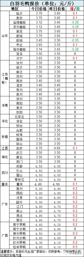 1:今晚分割鸭区域报价涨跌不一,山东棚前弱势下滑,进场价格开始抬升。