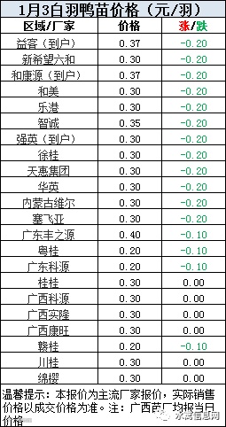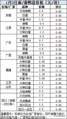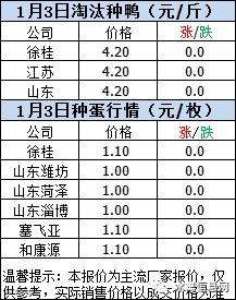一、2021年1月2日晚至1月3日 白羽肉鸭报价
