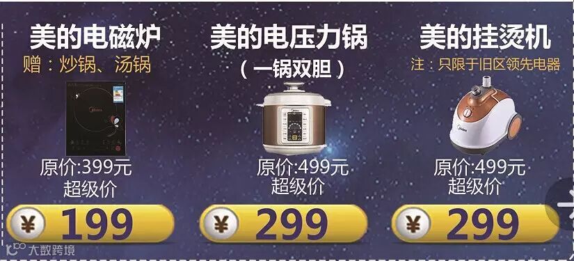 海信电视、冰箱/容声冰箱/小天鹅洗衣机/九阳小家电/美的家电、美的烟灶、热水器