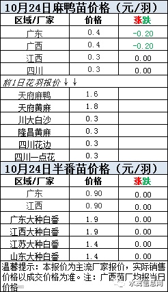 二、10月24日 麻鸭苗、半番鸭苗报价;