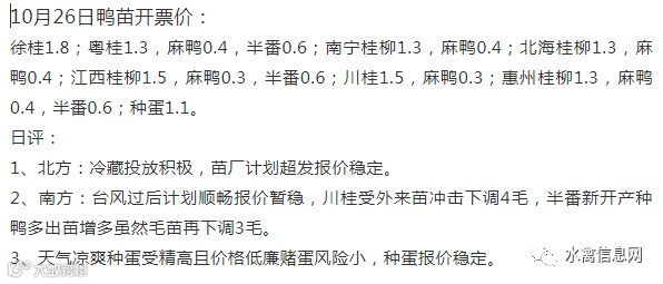 北方鸭苗没啥好说的,孵化集团和冷藏合同集团正面交锋。现在这个价格基本稳定,波动调整。除非消费突然好转或者种鸭大规模减量,消费大规模拉升现在看不太现实啊,孵化集团也不会大规模减产,就这样僵持着。