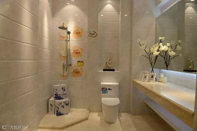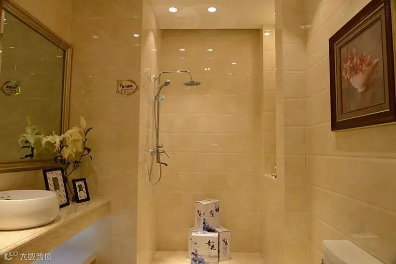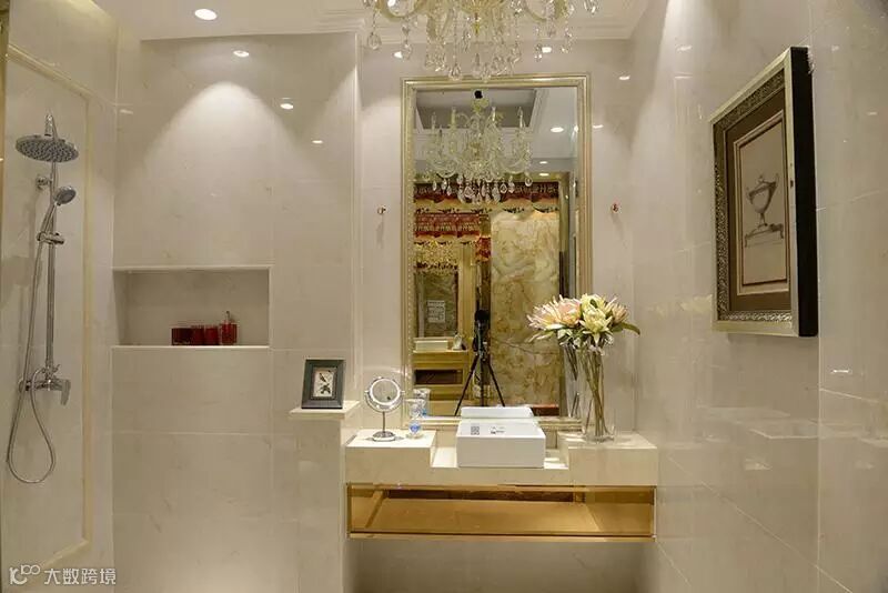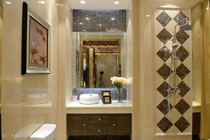 天花的吊灯和灯槽的配合设计让这间卫生间显得温馨感十足。