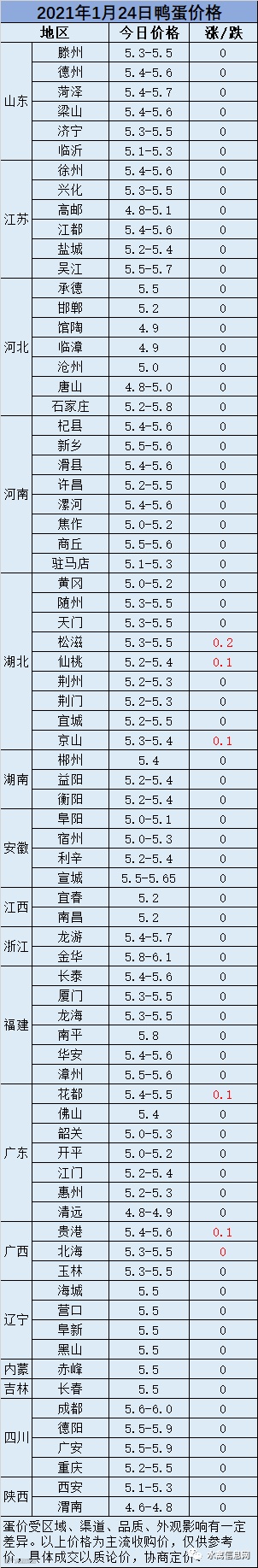 【鸭蛋价格】2021年1月24日鸭蛋报价:稳定为主,局部上涨。 益牧堂水禽信息