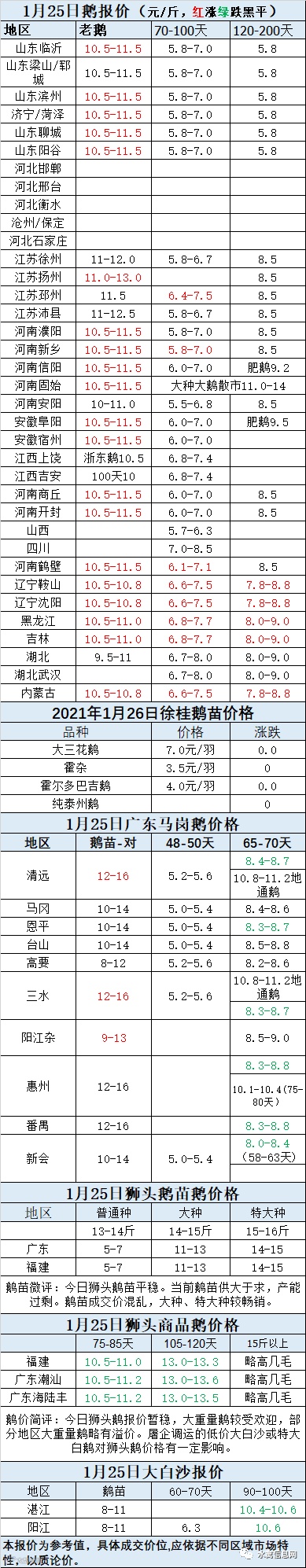 2021年1月25日商品鹅蛋价格(元/斤)