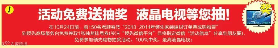 一直在关注我们微信平台的微粉们,从10月17日—10月31日,快快分享您的家人或者朋友关注【领先家电家装公司】微信平台,关注时回复“姓名+139***(关注客户电话号码)”,11月2日将在微信平台公布幸运中奖者名单;