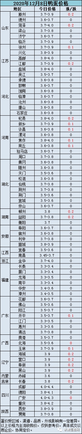 2020年12月8日淘汰蛋鸭价格参考值:活禽6.5-7.0元/斤、屠宰6.0-6.7元/斤。受肉鸭活禽价格下跌影响叠加淘鸭增多种鸭淘汰乱市,淘汰蛋鸭持续弱势震荡,走货较慢。