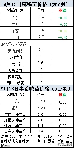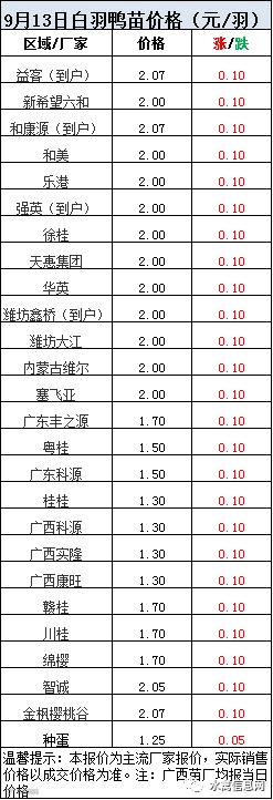 2020年9月13日鸭苗报价;