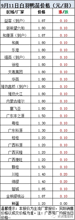 行情简析:樱桃谷鸭苗涨势放缓,全国普遍上涨0.1元/羽,四川上涨0.2元/羽。