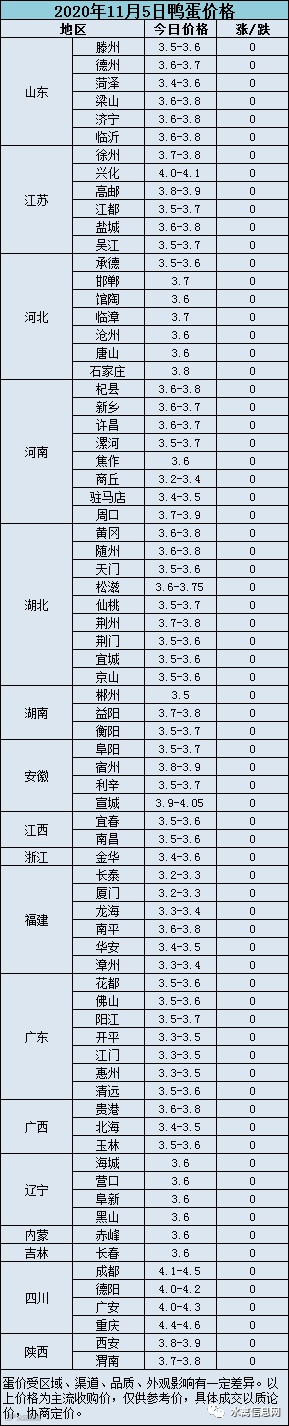 2020年11月5日淘汰蛋鸭价格参考值:活禽6-6.8元/斤、屠宰4.5-5.0元/斤。受肉鸭活禽价格下跌影响叠加淘鸭增多种鸭淘汰乱市,淘汰蛋鸭持续弱势震荡,走货较慢。