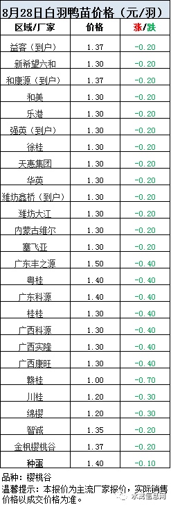今晚樱桃谷毛鸭报价,北方以合同鸭为主,报价稳定。粤、桂、赣继续跳水下跌。【煎熬还在进行中--8月下旬肉鸭行情分析】