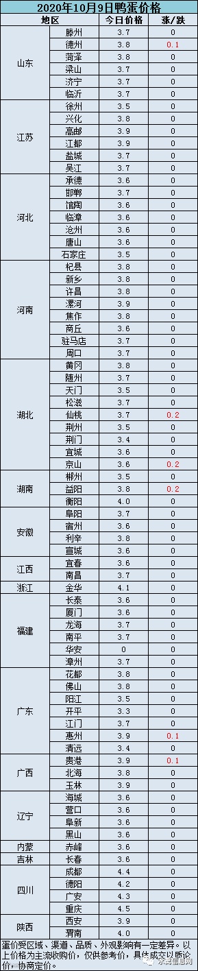 2020年10月9日淘汰蛋鸭价格参考值:6.6元/斤。受肉鸭活禽价格下跌影响叠加淘鸭增多种鸭淘汰乱市,淘汰蛋鸭持续弱势震荡。