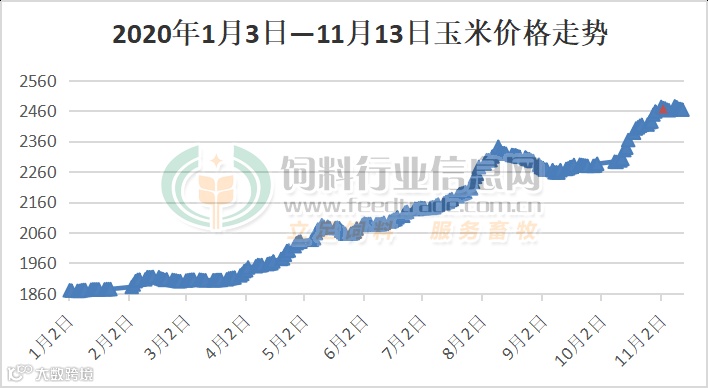 由于今年豆粕、玉米等饲料原料价格持续性走高,饲料厂成本增加,继而饲料市场涨价基本上就没有间断过,分别在今年2月、4月、5月、6月、7月、8月、9月、10月、11月这些月份中都有饲料企业明显的上调价格。
