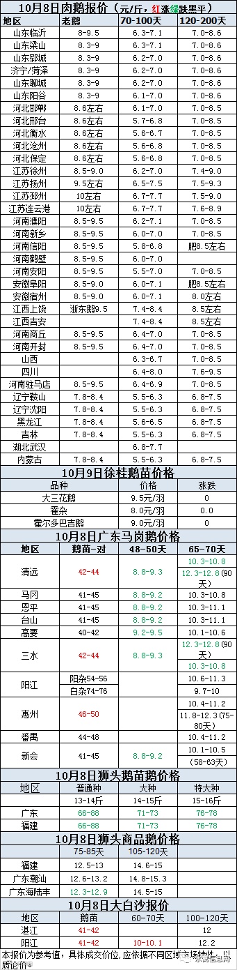 2020年10月08日鹅种蛋价格(元/枚)