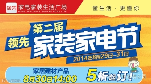 顾客在8月30日(下午14:30)预定家装各品牌产品,顾客预交1000元订金,现场预定家装各品牌工厂直销价政策,顾客凭家装订单票及家装邀请卡由家装总经理现场签送1100元家电补贴基金,相当于“0”元预定,资源有限,先定先送!