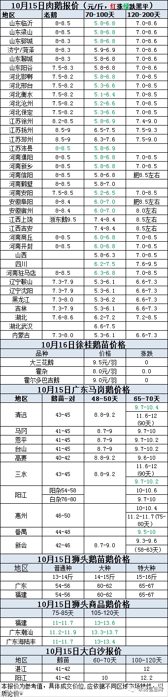 种鹅价格:(下跌趋势)