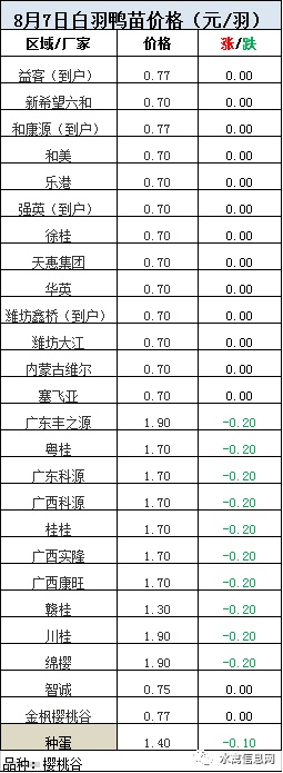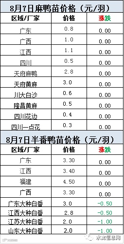 2020年8月7日鸭苗报价