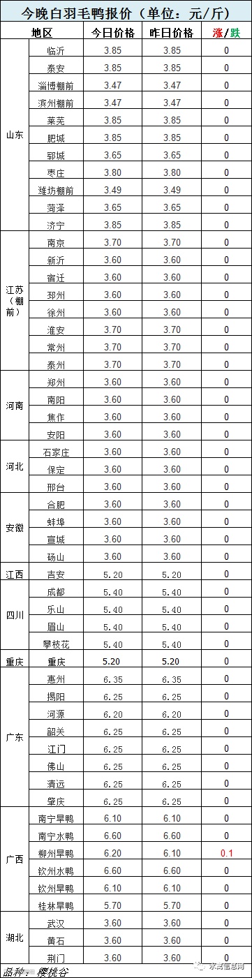 今晚樱桃谷毛鸭报价整体稳定,部分区域小幅涨跌调整。【详细报价请查看下方表格】