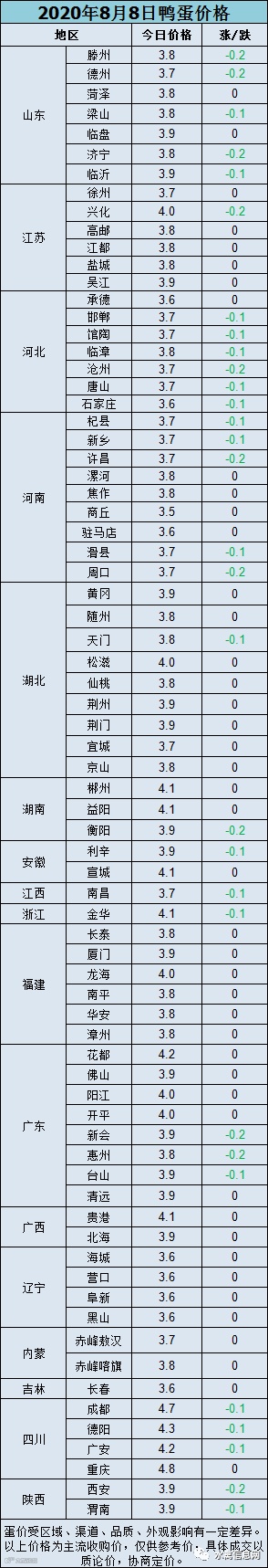 【鸭蛋价格】2020年8月8日鸭蛋报价,弱势,跌跌不休。
