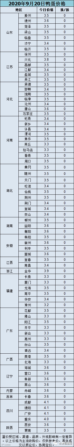 【鸭蛋价格】2020年9月20日鸭蛋报价,谷底磨砺,稳定调整。