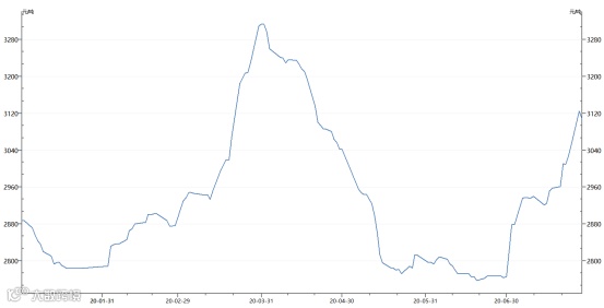 (2020年1月1日至7月28日豆粕现货价 数据来源:Wind资讯)