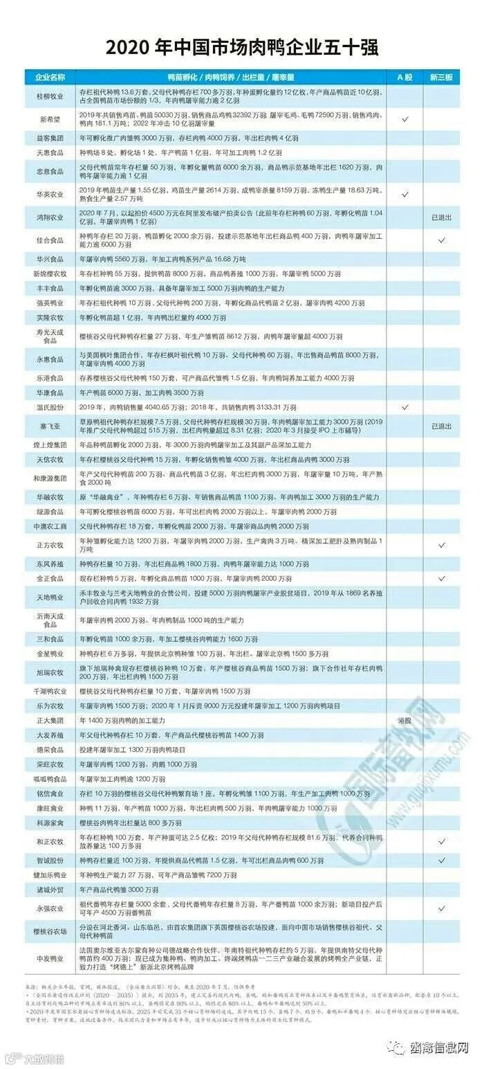 导读:2020年中国鸭业50强企业榜单。素材来源:国际畜牧网