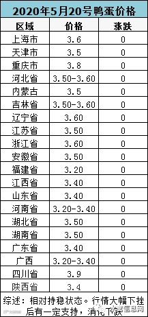 【鸭蛋报价】5月20日鸭蛋价格,稳中上扬,淘汰鸭价上升趋势