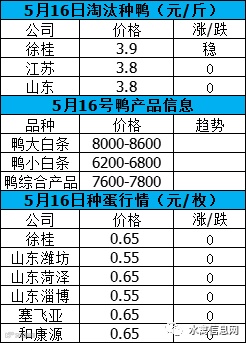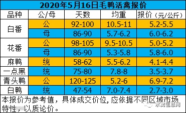 5月16日晚至17日下午毛鸭报价