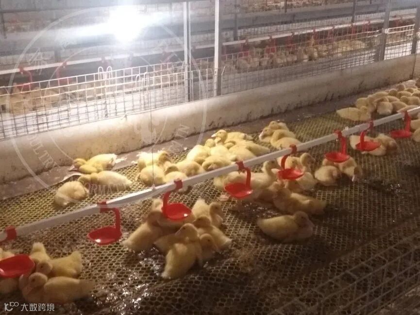 1、我们一进鸭棚,先是看到水,有没有水,水压怎么样,再打着灯看一下水线小碗里有没有水,下水顺畅不顺畅等,比如我们就发现个别水线上小鸭集中在几个乳头上喝水,检查发现部分乳头存在下水不顺畅出水量低的状况。如果观察不及时很有可能出现个别乳头堵塞的情况容易导致一部分弱鸭饮水困难。