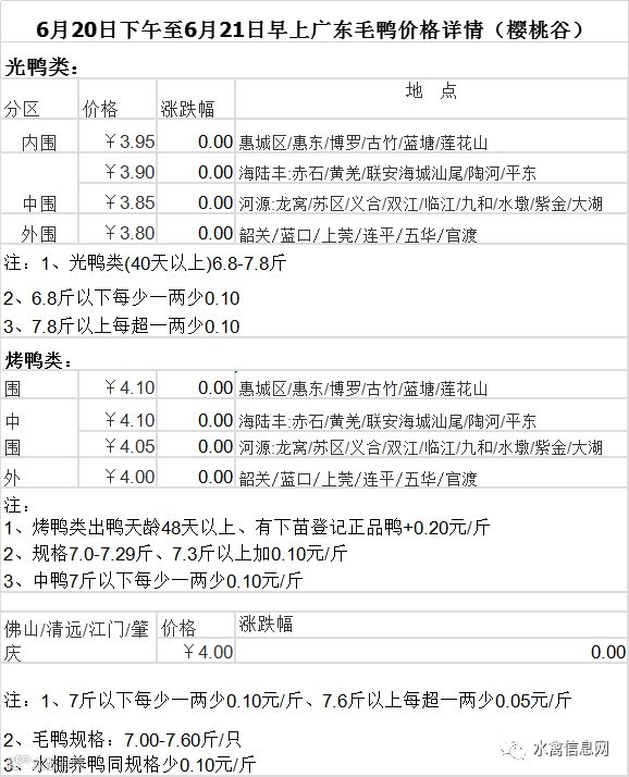| 2020年6月20日两广毛鸭活禽报价 | ||||