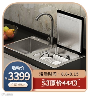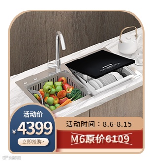 活动期间购买洗碗机加1元抢购LT01水龙头,加699元抢购垃圾处理器。