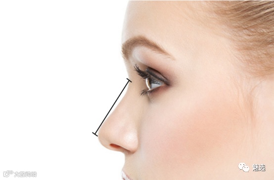 影响鼻长度的因素:鼻根点的位置。既往曾有人将鼻根点定义在眉间连线和内眦连线的中点,谓之“黄金线”。事实上,这个点对于中国人来说有些偏高。按照中国人的脸型来看,鼻根点的位置应该是略高于内眦连线水平,但不宜超过重睑线水平。具体需要根据求美者鼻额区的突出度来决定,对于鼻额区偏低的求美者,如果不考虑鼻额区填充手术的话,求美者的鼻根点不宜过高,以免引起“通天鼻”。对于鼻额区较高的求美者,鼻根点可适度上移以使鼻眉连线更顺滑,术后鼻外观更自然美观。