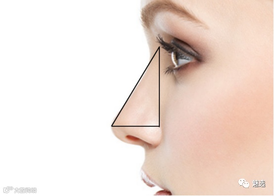 鼻根部的前突程度决定了侧面鼻锥三角形的顶点位置,而且此处的种族差异、地域差异比较明显,受眉间处突出程度的影响较大。一般来说,眉间越前突,鼻根的突出度可以做的更大一些,否则,就应适当的减小,以防“通天鼻”出现。就东方人来讲,只要鼻根点位置在经眉间垂线和角膜前缘垂线中点之前,就可以认为不需要做隆高手术,否则可以使用填充物来调整。