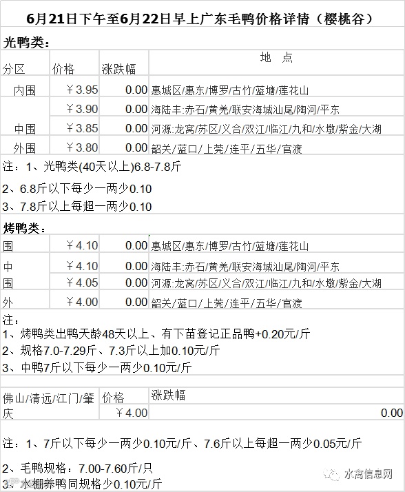 | 2020年6月21日两广毛鸭活禽报价 | ||||