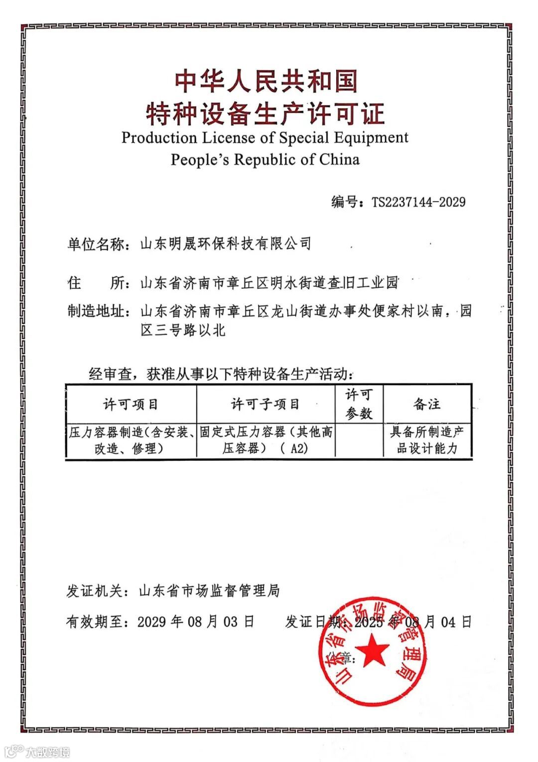 作为区域特种装备制造行业的领军企业,山东明晟环保长期专注于压力容器的研发、设计、制造及安装服务,通过持续的技术创新与人才培育,打造了一支技术精湛、经验丰富的专业化团队,并建立了完善的全流程质量管理体系。此次压力容器A2资质顺利通过审查,进一步巩固了企业的市场竞争优势,为后续业务拓展奠定了坚实基础。