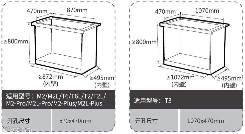 下图红色标记为右槽洗碗机的电源插座预留位置,插座规格:10A单相三孔插,必须保证良好接地。