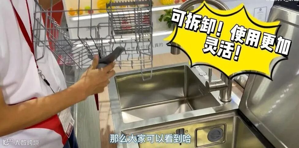 而洁浦水槽洗碗机的喷淋臂是非固定式的,这样不使用洗碗机时,就可以直接把碗篮取出来,洗碗机也可以当做水槽用,空间利用更合理。
