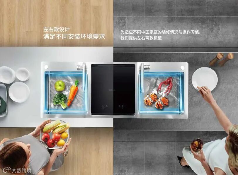 考虑到每个家庭的装修情况与操作习惯,洁浦水槽洗碗机推出左右款设计。