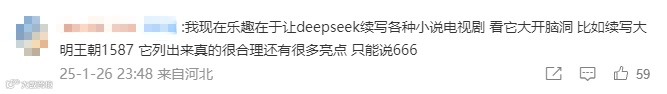 1月26日,游戏科学创始人、CEO,《黑神话:悟空》制作人冯骥评价DeepSeek:可能是个国运级别的科技成果。