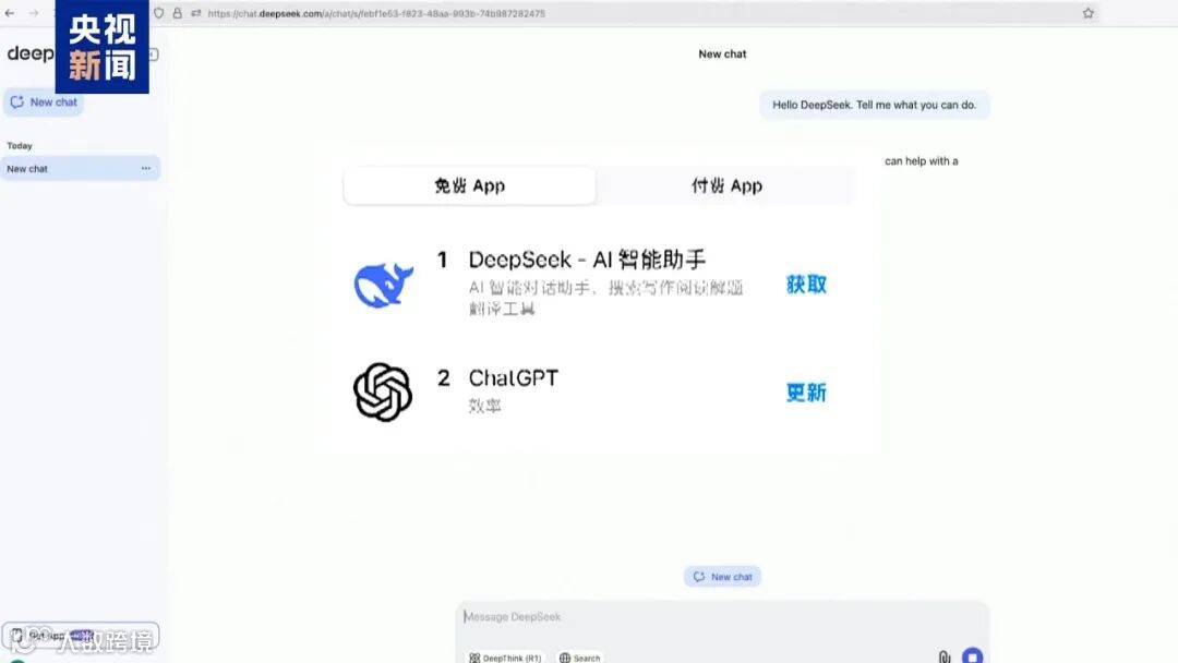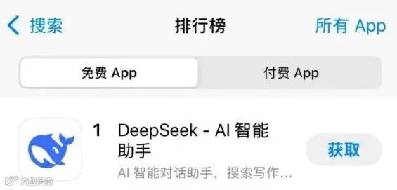 目前,深度求索开发的移动应用已经超越ChatGPT,登顶苹果手机应用商店美国区免费应用榜单。