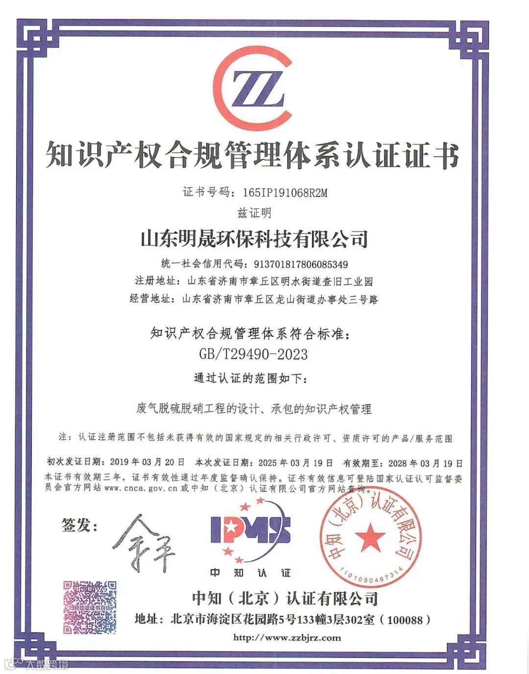 3月15日中知北京认证有限公司对我司知识产权合规管理体系进行了严格考核,近期将知识产权合规管理体系认证证书下发至我司。