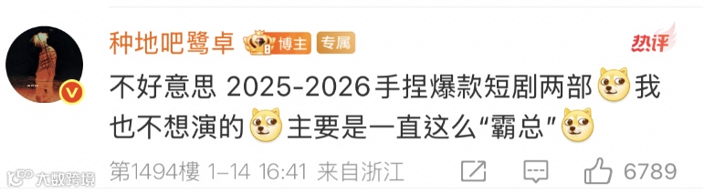 第一次看到艺人在评论区聊广告片,鹭卓是真爱演霸总啊