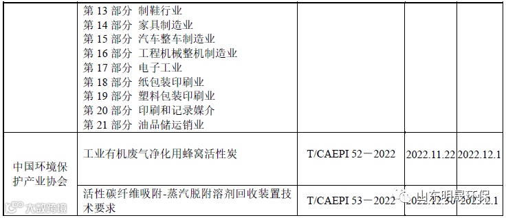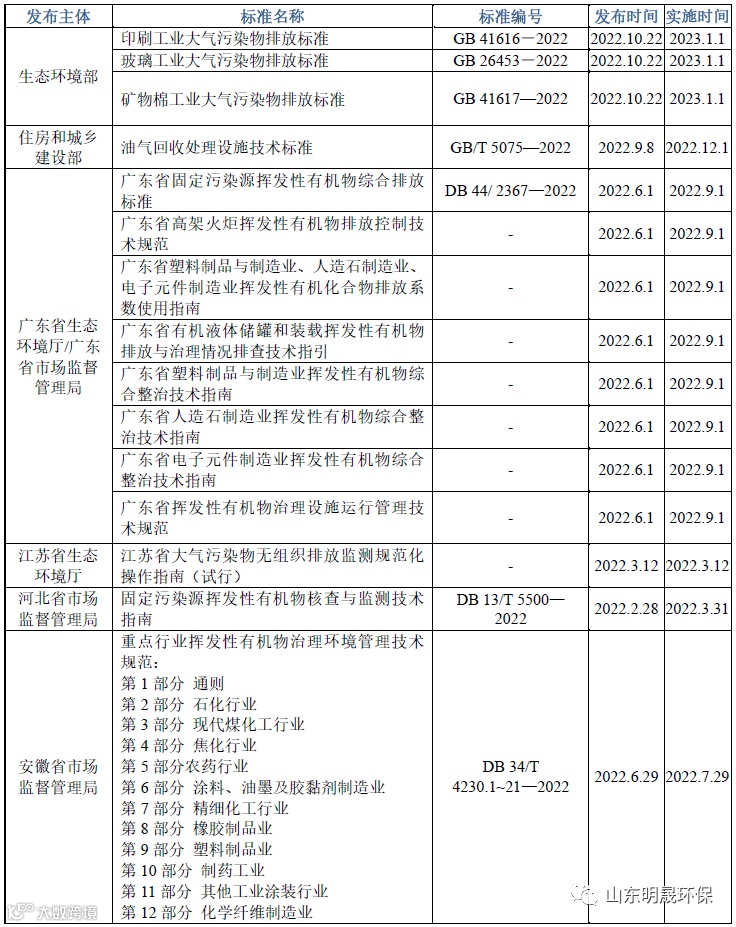 表1 2022年VOCs污染治理相关标准规范