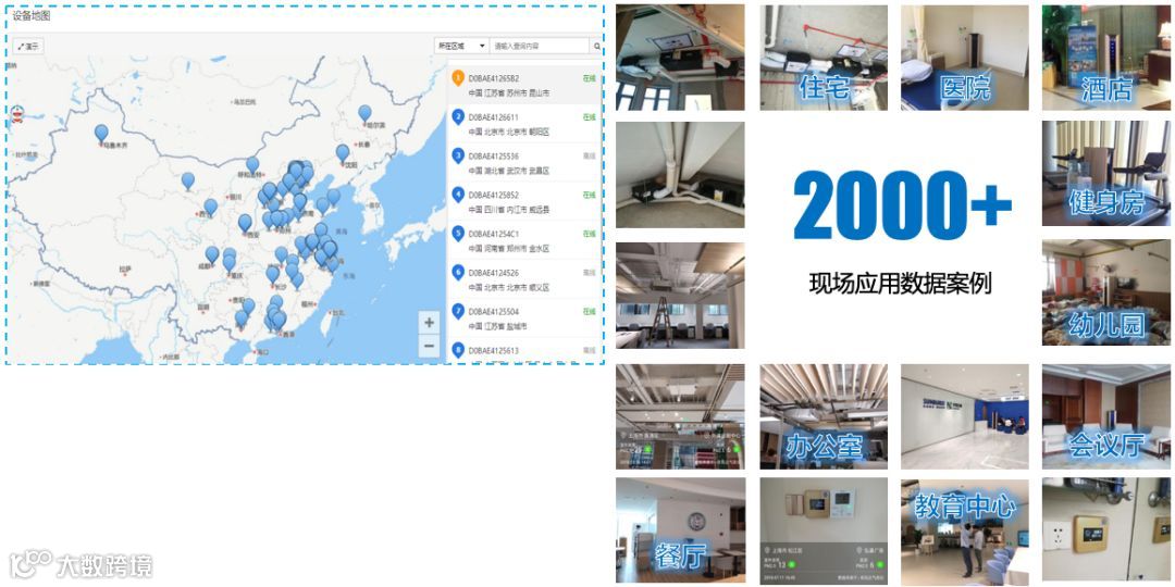 上图第一张是我们在国贸的一个幼教机构项目,第三方派人到我们项目中去做了实际的现场测试,包括对风量、PM2.5、甲醛的测试。测试完后,结果非常理想,我们还拿到了“健康室内环境示范空间”的牌子,也就是林总(林峰)刚才说的牌子。 我们北京的服务商展厅也是由这样的第三方机构出面做的实地检测,效果也不错,也挂上了这样一个“健康室内环境示范空间”的牌子。