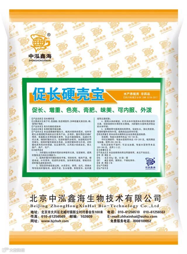 超强吸收,快速硬壳。促进同步蜕壳, 加速蜕壳后甲壳硬化, 提高壳硬度及亮度。