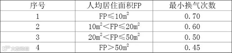 1、新风系统的最小新风量宜按换气次数法确定,居住建筑最小换气次数应按照下表要求进行设计。