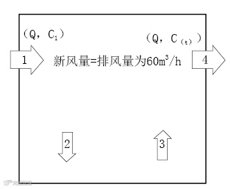 上面公式中的k可以理解成有效换气次数,这样就更加准确。怎样提升有效换气次数,需要送排风口的合理位置分布,此公式同样适用于无人的房间内CO2浓度变化。