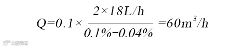 成年人一般CO2呼出量按照Xc=18L/(人·h),即在睡眠状态下的呼出量。室内CO2限值按照最低要求控制在0.1%(1000ppm)以内,室外取0.04%此时对应的